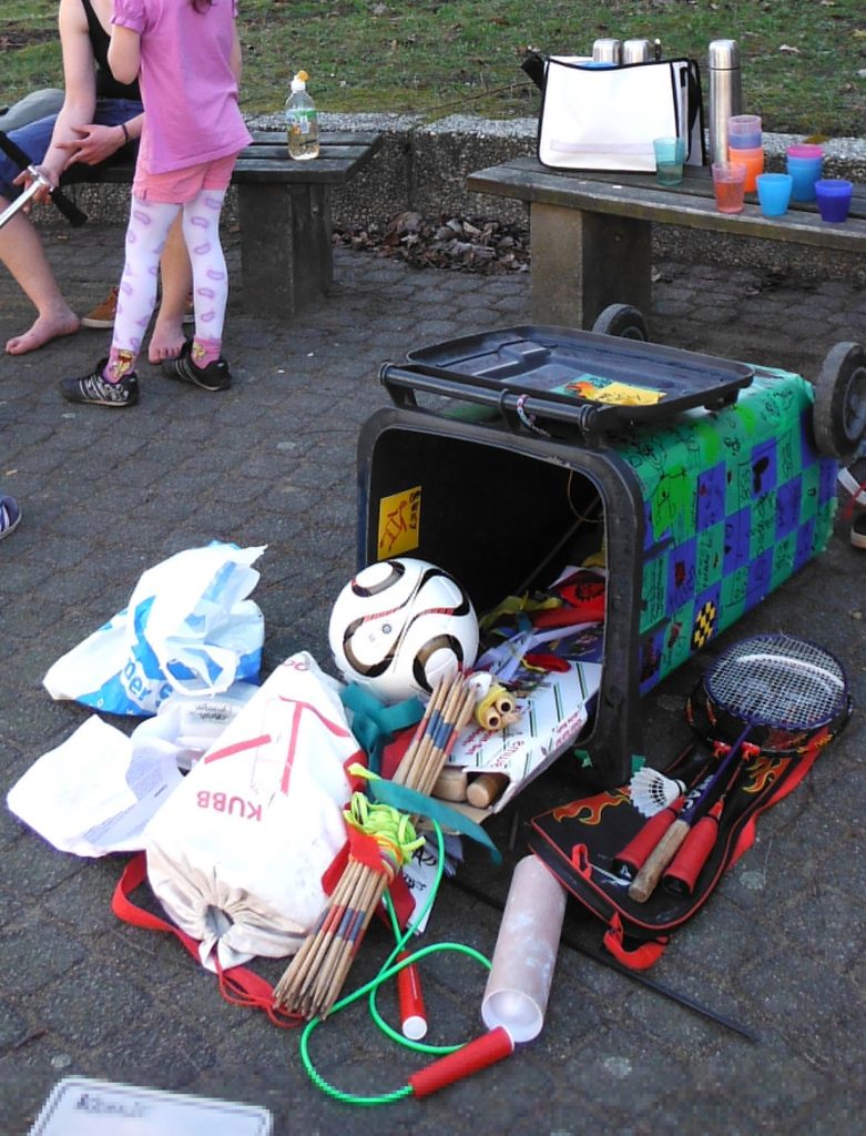 An der Kidstonne treffen Sie Praktikant:innen, Honorarkräfte und Ehrenamtliche und natürlich die Kidstonne gefüllt mit vielen Spielsachen.